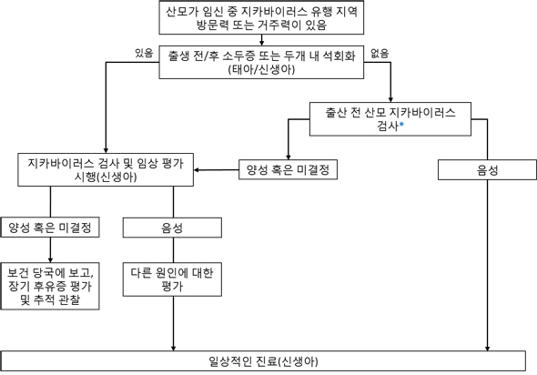 ¡Ü ÁöÄ«¹ÙÀÌ·¯½º °¨¿°ÀÌ ÀǽɵǴ »ê¸ð·ÎºÎÅÍ Ãâ»ýÇÑ ½Å»ý¾Æ ¹× ¿µ¾Æ¿¡¼ ¼±Ãµ°¨¿°ÀÇ Áø´Ü ¹× óġ´Â ÃÖ±Ù ´ëÇѼҾưúÇÐȸ ¹× ´ëÇѼҾư¨¿°ÇÐȸ¸¦ ÅëÇØ Á¦ÀÛ/¹èÆ÷µÈ ¡®ÁöÄ«¹ÙÀÌ·¯½º °ü·Ã ¼Ò¾ÆÃ»¼Ò³â Áø·áÁöħ(Á¦ 2.0ÆÇ, 2016. 2. 23.)¡¯À» µû¸£µµ·Ï ÇÑ´Ù(Ç¥1, 2, ±×¸²2).