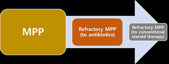 ¸¶ÀÌÄÚÇö󽺸¶ Æó·ÅÁß¿¡´Â ÃʱâÀÇ Ç×»ýÁ¦¿¡ "Àß Ä¡·áµÇÁö ¾Ê´Â±º¡±(refractory mycoplasma pneumoniae pneumonia to antibiotics)±º ÀÖ°í, À̵é Áß¿¡´Â ÀϹÝÀûÀÎ ¿ë·® (¡Â2mg/kg/day)ÀÇ ½ºÅ×·ÎÀ̵带 Ãß°¡ÇÏ¿© »ç¿ëÇÏ¿©µµ Àß È£ÀüµÇÁö ¾Ê´Â±ºÀÌ ÀÖ´Ù.