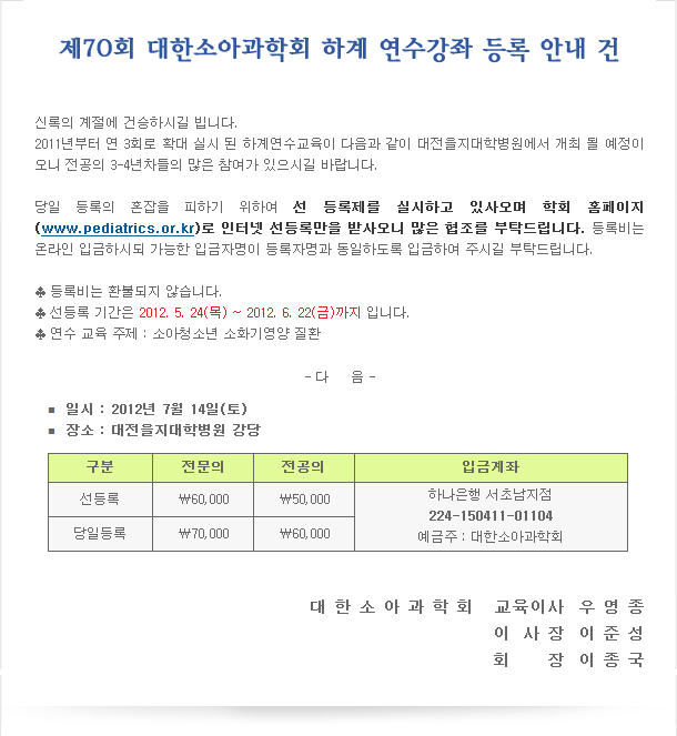 Á¦70ȸ ¼Ò¾ÆÃ»¼Ò³â°ú ÇÏ°è ¿¬¼ö°Á µî·Ï ¾È³»