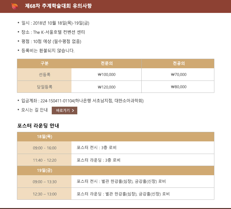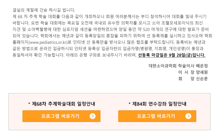 Á¦68Â÷ ´ëÇѼҾưúÇÐȸ Ãß°èÇмú´ëȸ ¹× 84ȸ ¼Ò¾ÆÃ»¼Ò³â°ú ¿¬¼ö°Á µî·Ï¾È³»